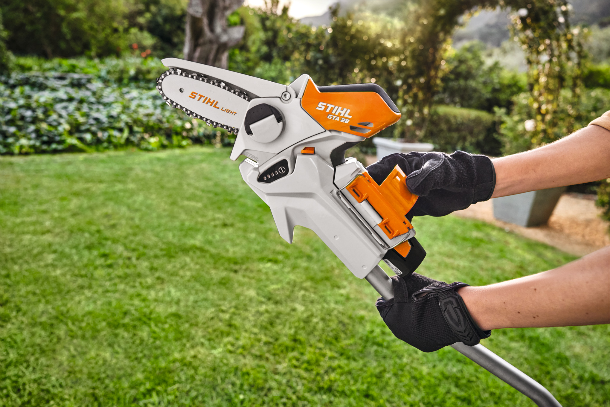 Με τον άξονα προέκτασης της STIHL για το GTA 26, μπορείτε να επεκτείνετε άνετα το μήκος του επαναφορτιζόμενου ξυλοκοπτικού GTA 26 για εργασία στον κήπο σας . Αυτό σας επιτρέπει να φτάσετε σε κλαδιά πιο μακριά.