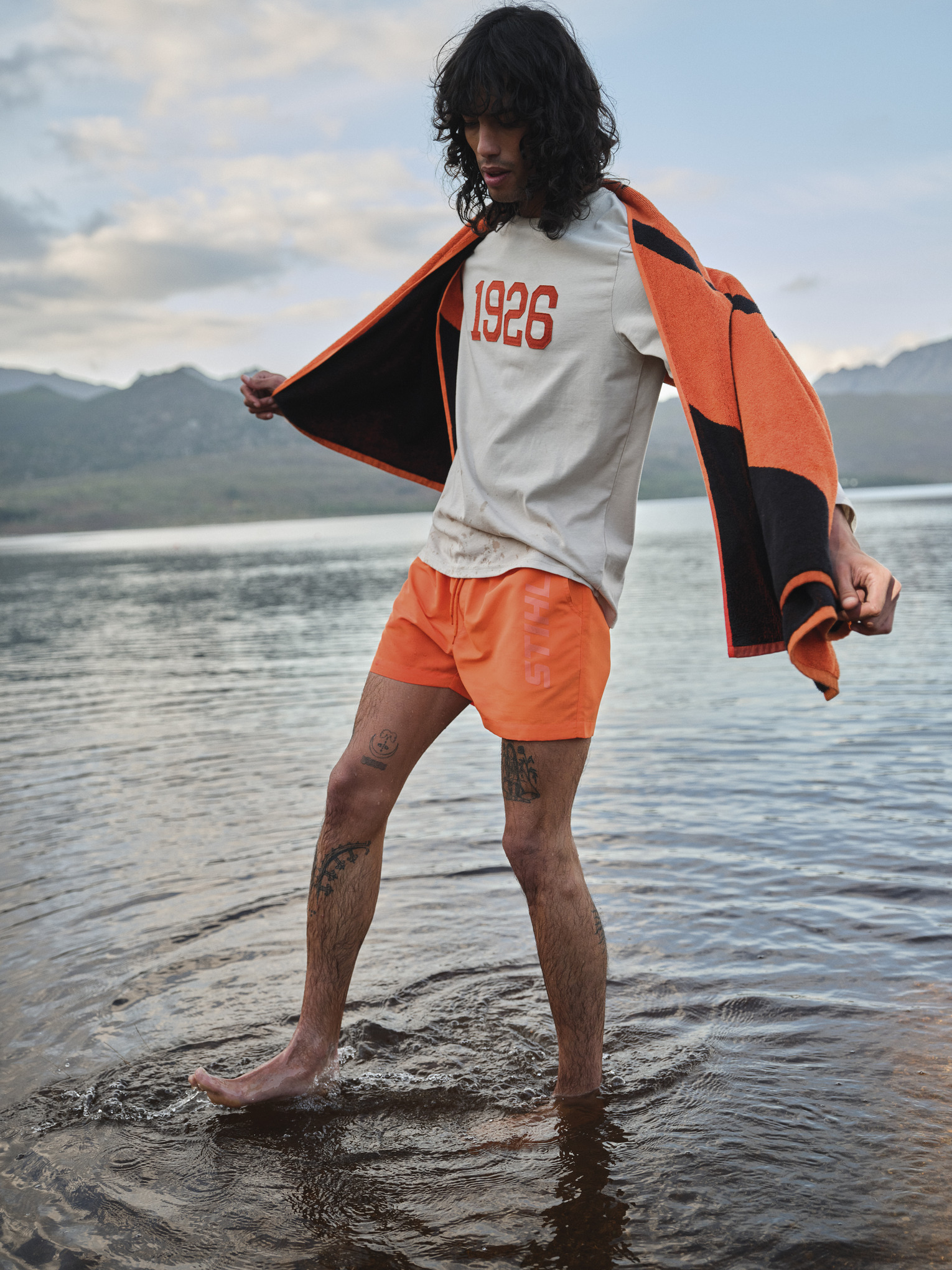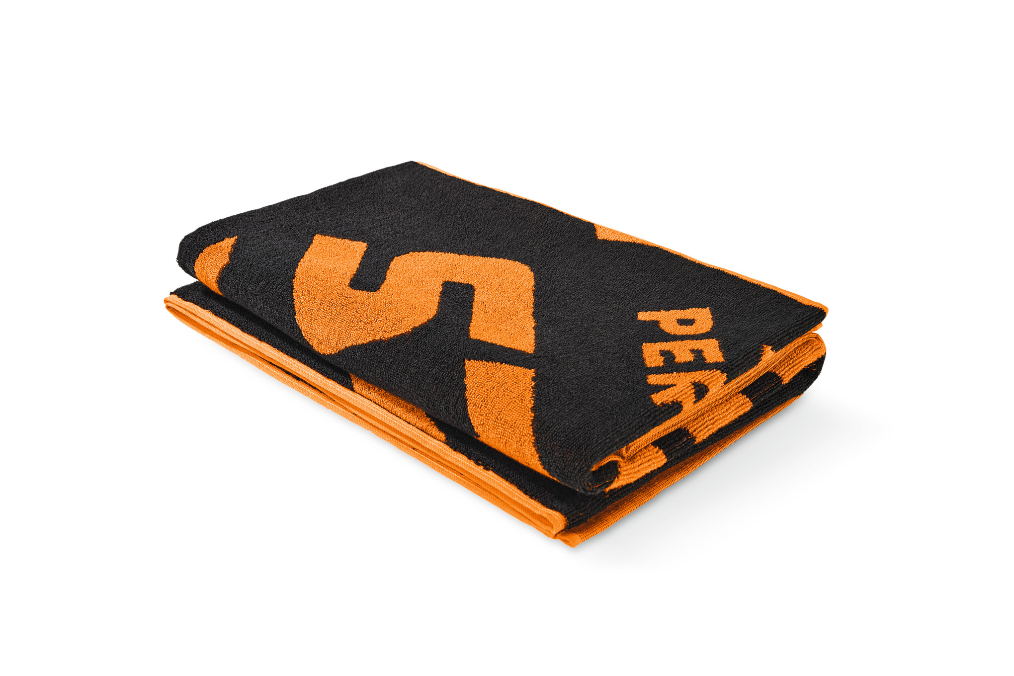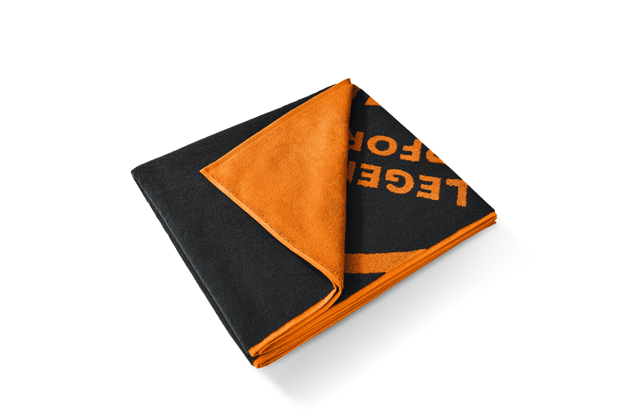 Όρμα στο νερό! Τεράστια πετσέτα μπάνιου για την παραλία, τη σάουνα ή το ατμόλουτρο, από καθαρό βαμβάκι με υπέροχη αίσθηση από πετσετέ ύφασμα. Με μεγάλο λογότυπο STIHL σε εντυπωσιακό μαύρο και πορτοκαλί χρώμα που τραβάει την προσοχή. Διαστάσεις 80 x 180 cm. Υλικό: 100% βαμβάκι