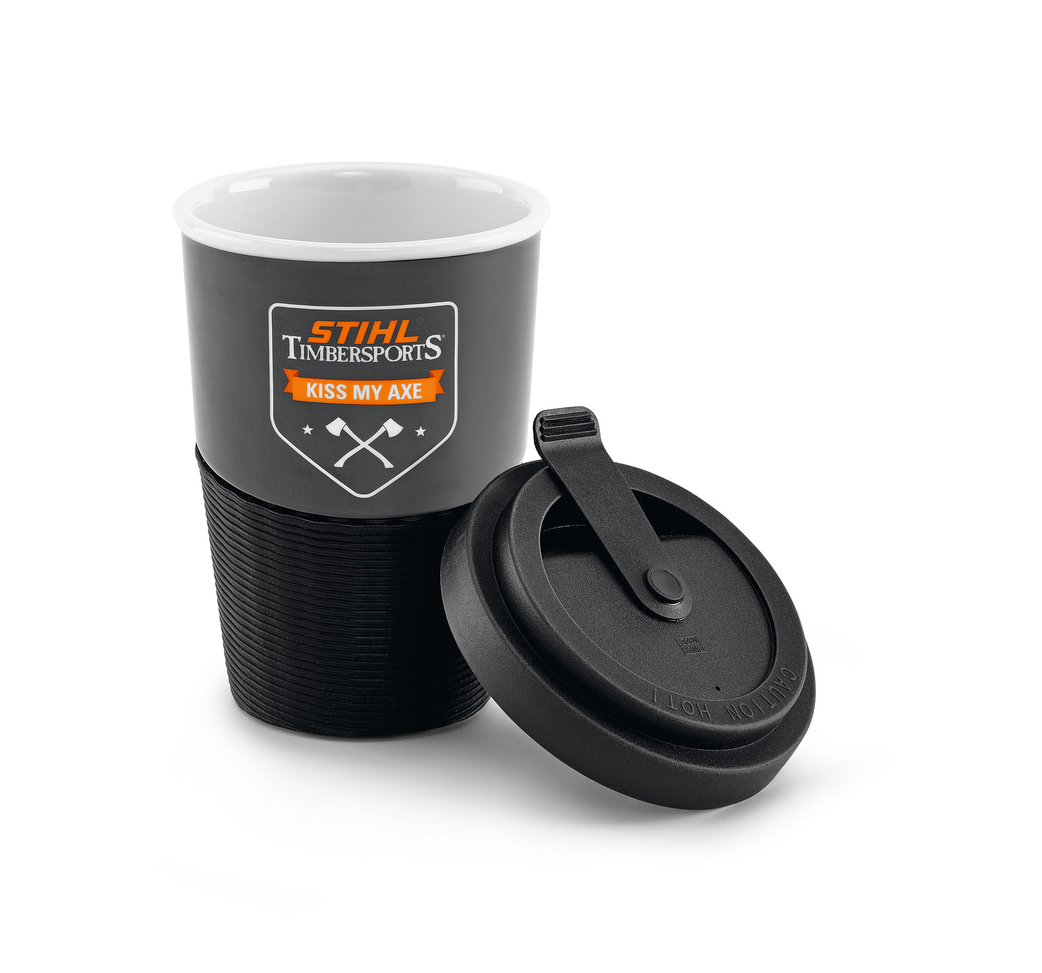 Αυτή η κούπα για καφέ on-the-go από πορσελάνη σε σχέδιο «STIHL TIMBERSPORTS®» δεν είναι μόνο όμορφη, αλλά και πρακτική: έχει χωρητικότητα 300ml και διαθέτει καπάκι και χιτώνιο από θερμομονωτική σιλικόνη, έτσι ώστε αυτή η επαναχρησιμοποιούμενη κούπα να κρατάει ζεστό το αγαπημένο σας ρόφημα.