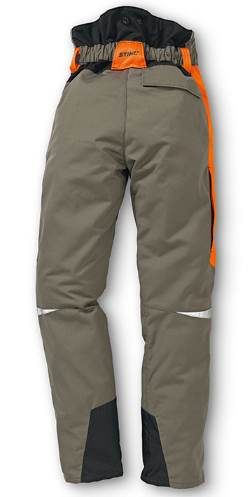 ΠΡΟΣΤΑΣΙΑ ΚΑΤΑ ΤΗΝ ΕΡΓΑΣΙΑ ΣΤΟ ΔΑΣΟΣ. Για τα παντελόνια προστασίας από κοπή με σχεδιασμό A (σύμφωνα με τα EN 381 και EN ISO 11393), η προστασία κοπής καλύπτει πλήρως το μπροστινό κάτω μέρος του σώματος. Στην πίσω αριστερή περιοχή των ποδιών, η προστασία είναι περιμετρική κατά 5 cm εκάστοτε. Στη δασοκομία, ο σχεδιασμός A σας προσφέρει πολύ καλή προστασία.