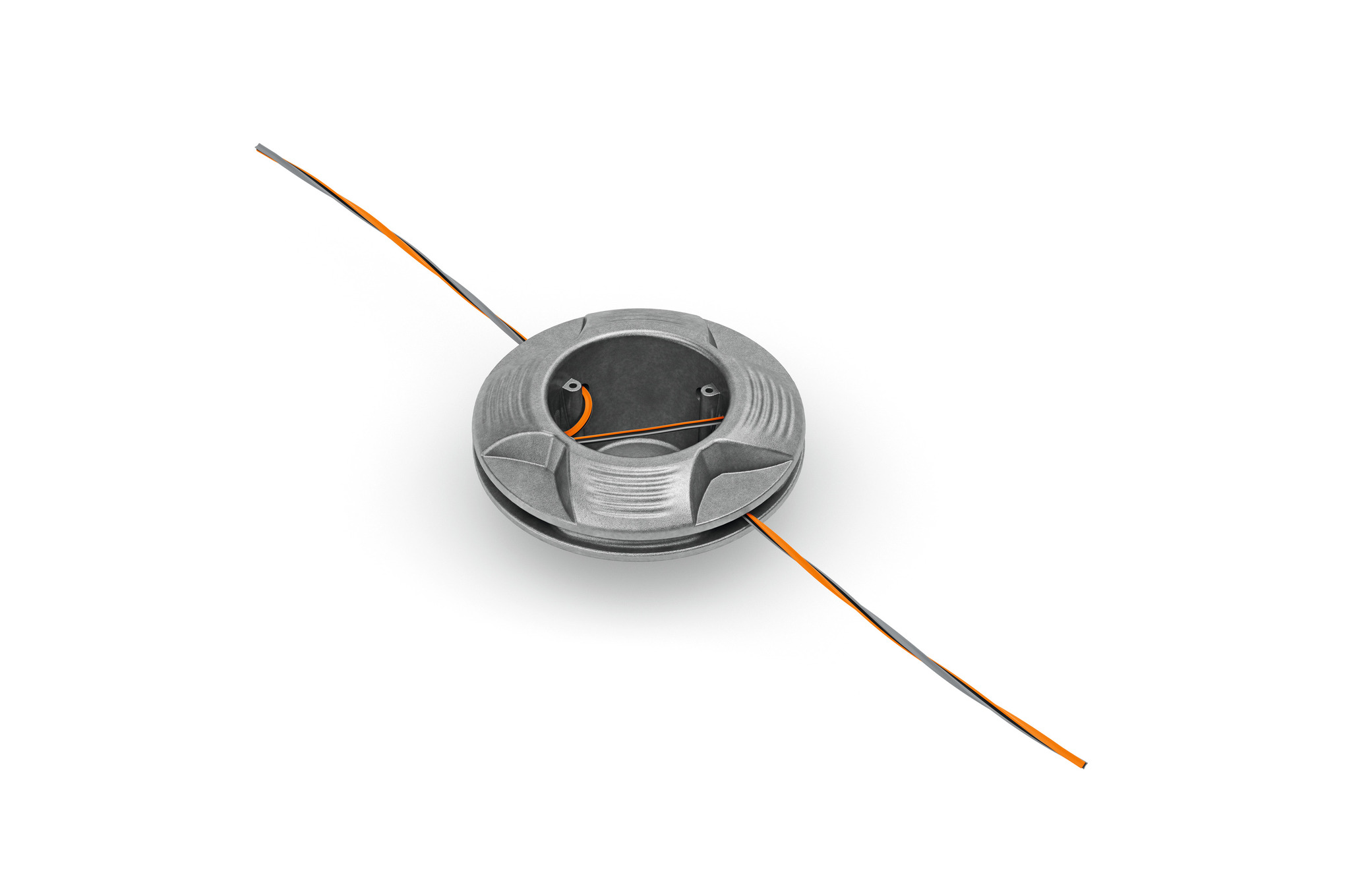 Μια εύχρηστη κεφαλή κοπής με διπλό νήμα για εργασίες κουρέματος και αραίωσης. Ένα νέο νήμα νάιλον τοποθετείται με το χέρι, χωρίς άνοιγμα της κεφαλής κοπής.