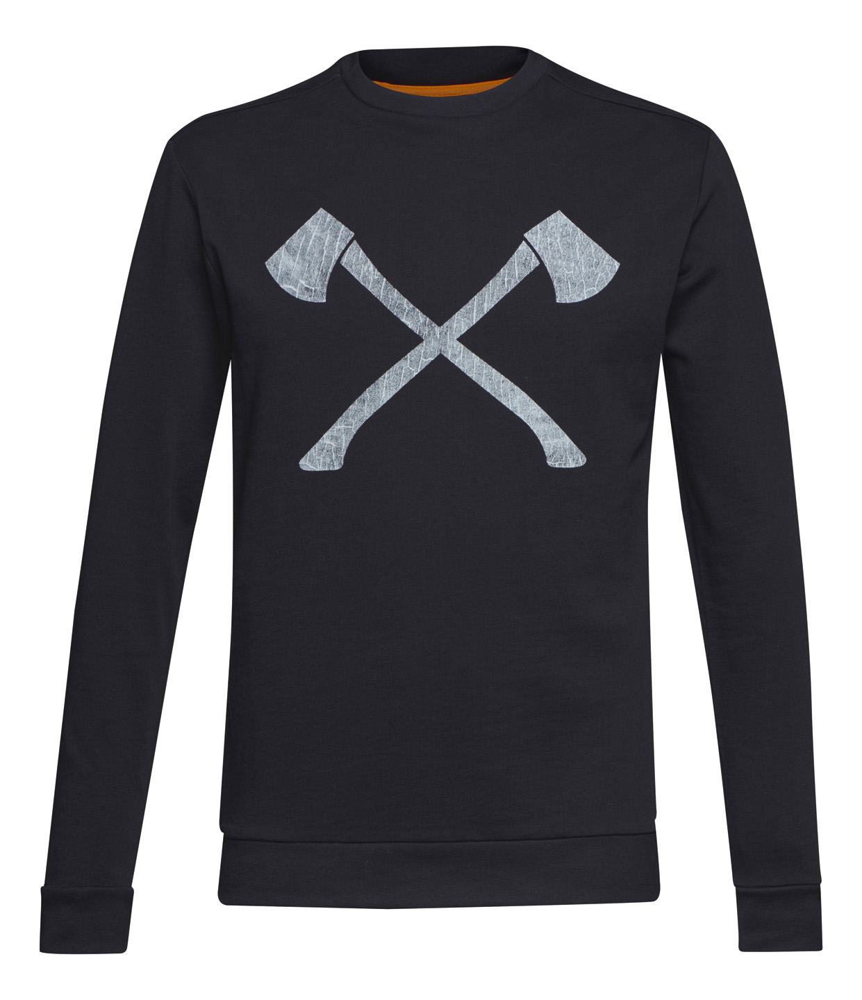 Όταν αρχίζει να κάνει κρύο πάνω στην πλατφόρμα, φορέστε αυτό το φούτερ AXE από 100% βαμβάκι. Εκτύπωση μεγάλης επιφάνειας με διασταυρούμενα τσεκούρια σε εμφάνιση ξύλου πάνω στον θώρακα και σήμα STIHL TIMBERSPORTS® στην πλάτη. Ένα must-have για κάθε οπαδό.