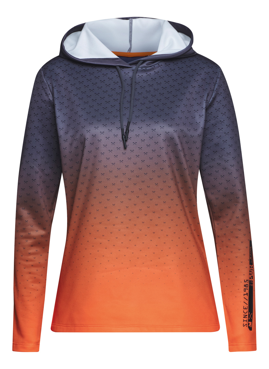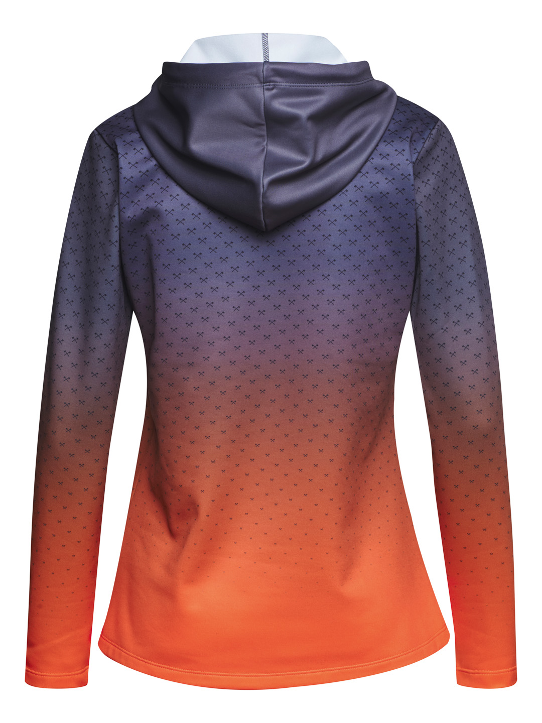 Για δραστήρια πρωινά. Αυτό το μακρυμάνικο μπλουζάκι με κουκούλα, από διαπνέον υλικό 95% πολυεστέρα και 5% ελαστάνη, με κομψή μετάβαση χρωμάτων από πορτοκαλί σε σκούρο γκρι, θα γίνει το αγαπημένο σας κομμάτι για τις αθλητικές σας δραστηριότητες – και όχι μόνο λόγω του επαναλαμβανόμενου σχεδίου με διασταυρούμενα τσεκούρια στο πάνω μισό.