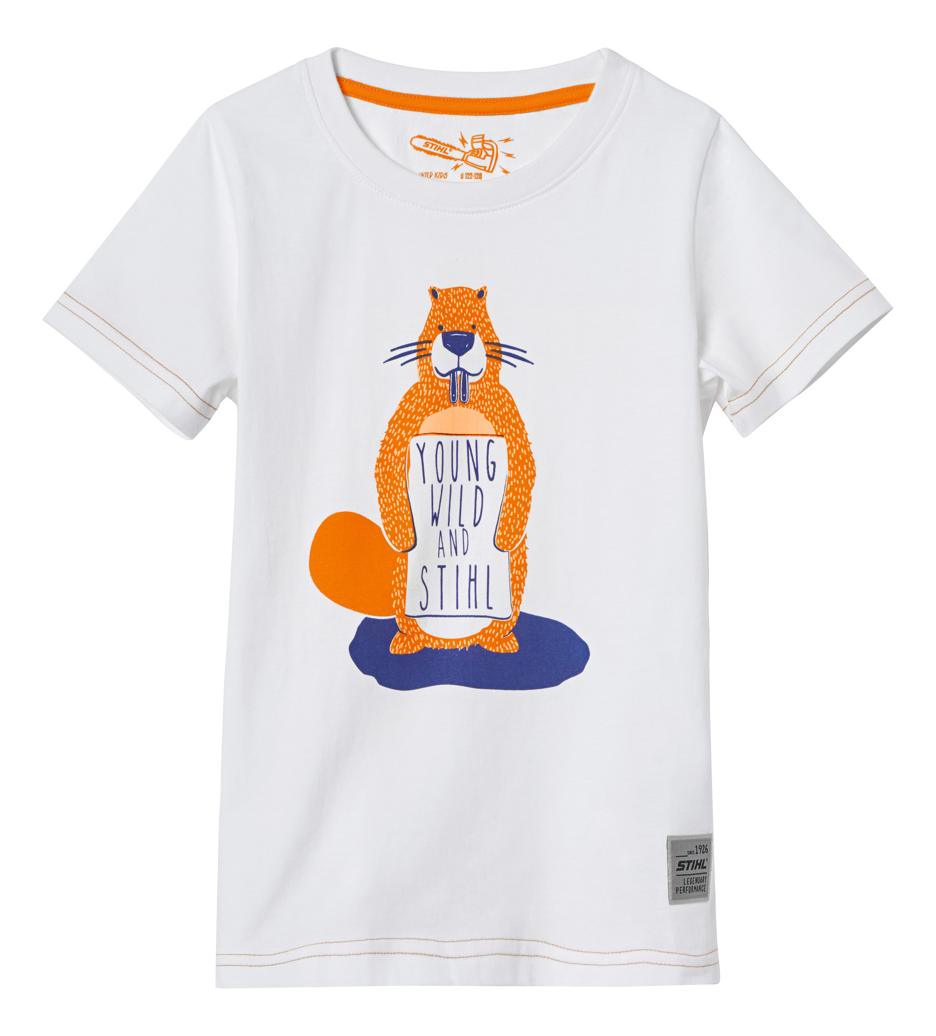 Προλάβετε! Αυτό το κουλ παιδικό μπλουζάκι, διαθέσιμο σε περιορισμένα κομμάτια, είναι κατασκευασμένο από υπεραπαλό καθαρό βαμβάκι και θα ανταπεξέλθει με επιτυχία στο περιπετειώδες πνεύμα των μικρών οπαδών της STIHL. Ο κάστοράς μας, που φέρει την επιγραφή «YOUNG & WILD», θα γίνει αγαπημένο σύμβολο στη νεολαία. Προσοχή όμως! Μέχρι εξαντλήσεως των αποθεμάτων.