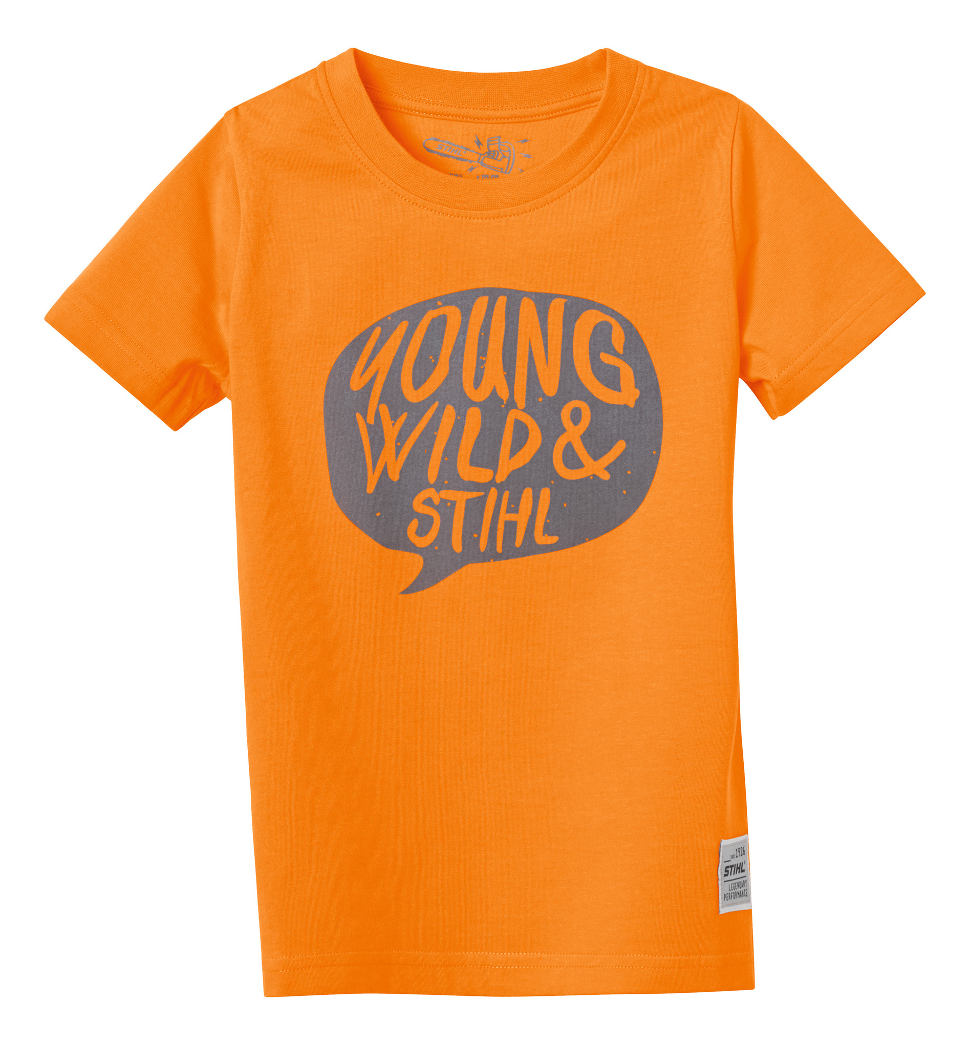 Αυτό το πορτοκαλί μπλουζάκι για άγρια παιδιά από 100% βαμβάκι είναι υπέρ-απαλό και έχει μεγάλη αντίσταση στη φθορά. Το κείμενο «YOUNG WILD & STIHL» στη μπροστινή πλευρά και η ετικέτα «LEGENDARY PERFORMANCE» το κάνουν γρήγορα αγαπημένο ρούχο των παιδιών.