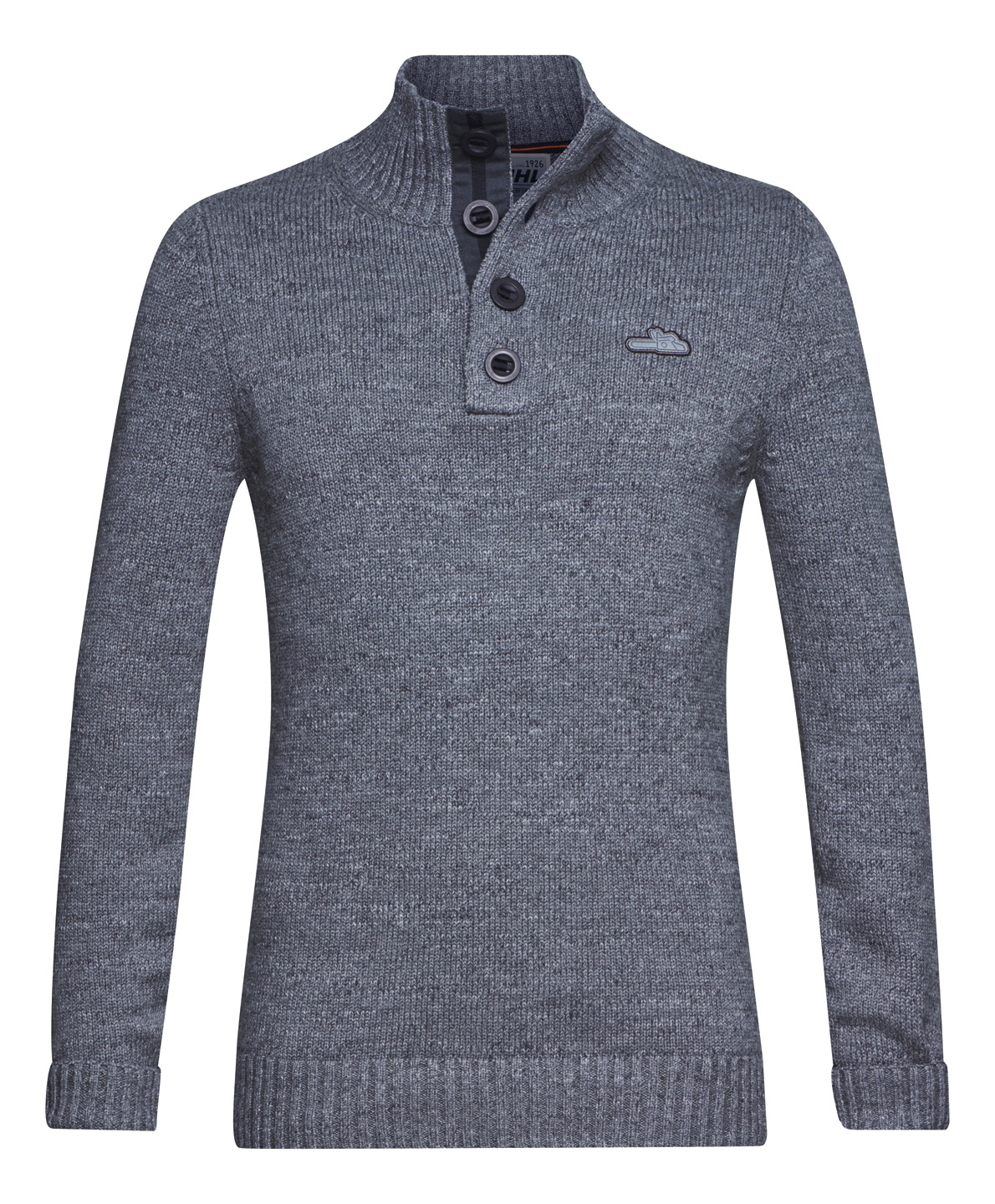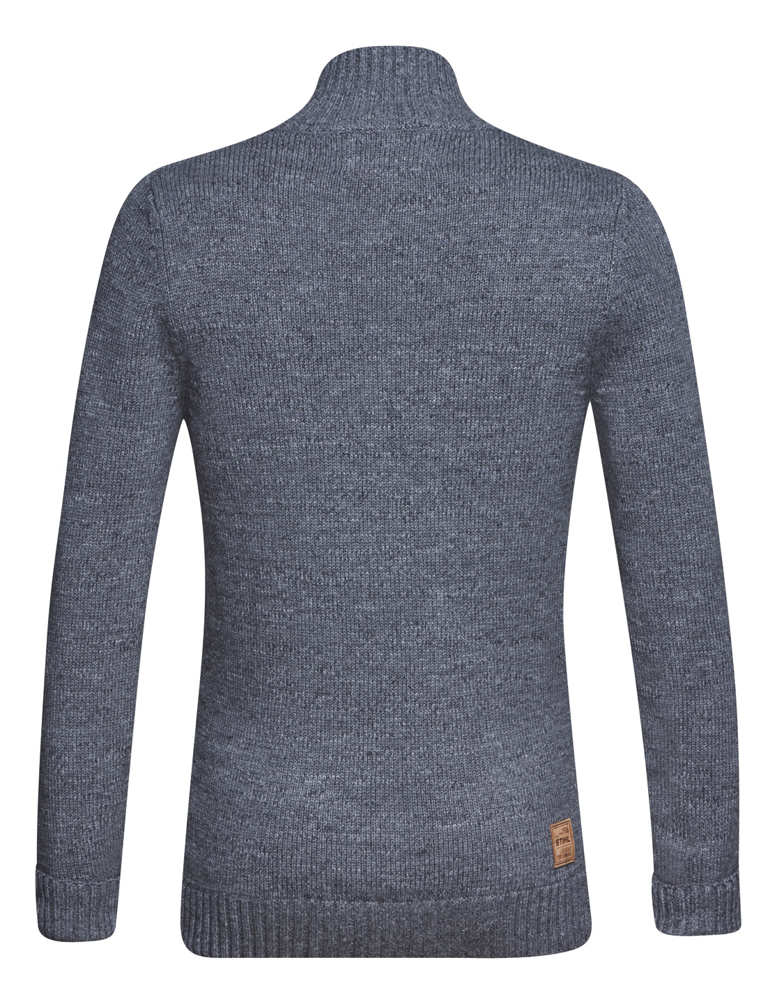 Casual ή κουμπωμένο, το καινούργιο μας γκρι πλεκτό πουλόβερ με όρθιο γιακά, από 85% βαμβάκι και 15% μαλλί, θα σας κρατήσει ωραία και ζεστά τις ψυχρές βραδιές. Το υφαντό αλυσοπρίονο στην αριστερή πλευρά του θώρακα, το σήμα φελλού στην πλάτη και η προσεγμένη πατιλέτα δίνουν το στίγμα σ’ αυτό το πουλόβερ.
