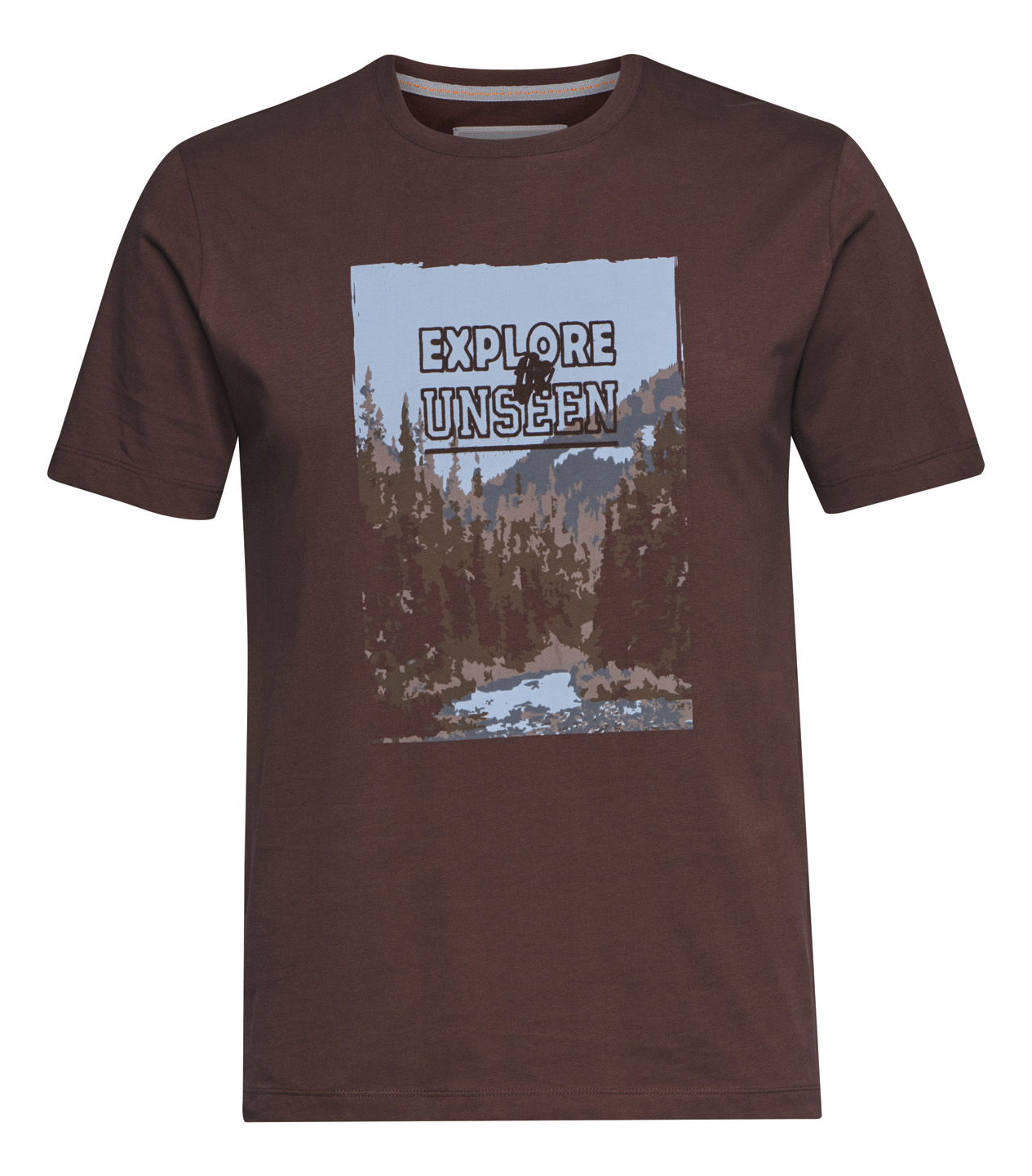 Ένα T-shirt για εξερευνητές. Για να βλέπετε τι συμβαίνει, ακόμα και από μακριά. T-shirt με μεγάλη εκτύπωση φύσης στην μπροστινή πλευρά και επιγραφή «EXPLORE THE UNSEEN». Από 100% βαμβάκι, αυτό το T-shirt είναι τόσο άνετο που θα το φοράτε σε κάθε σας εκδρομή.