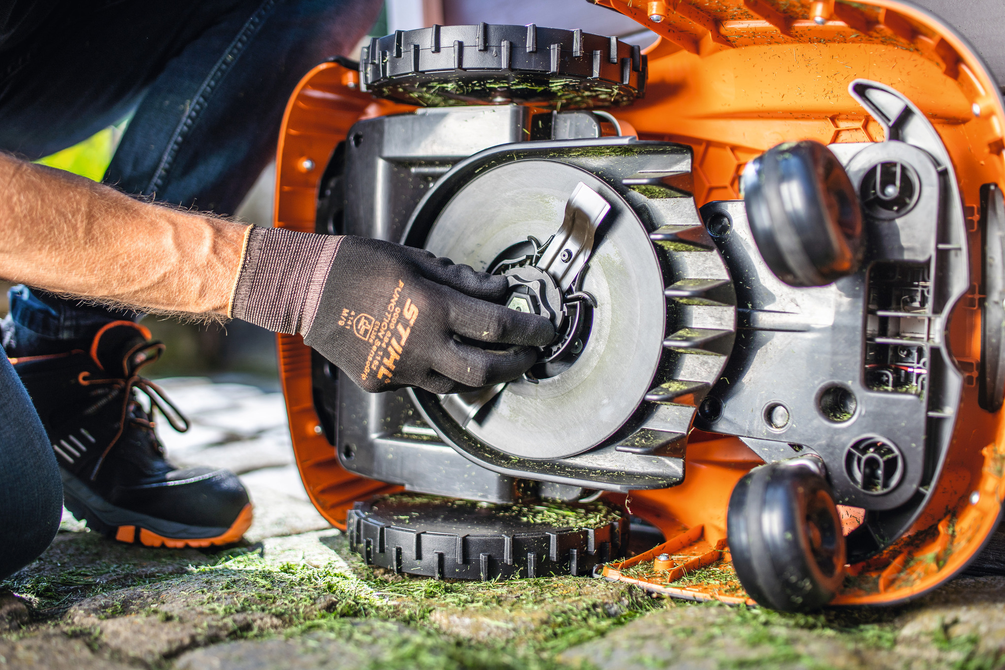 Το χλοοκοπτικό ρομπότ iMOW® STIHL RMI 422 με μονάδα άλεσης, ψιλοτεμαχίζει το κομμένο γρασίδι και λιπαίνει το γκαζόν ταυτόχρονα: Κατά τη λειτουργία αλέσματος, το iMOW® κόβει μόνο τις κορυφές από το γρασίδι και κατανέμει τα μικρά σωματίδια χόρτου ομοιόμορφα στο γκαζόν. Τα πολύτιμα θρεπτικά στοιχεία που περιέχονται στα αποκόμματα, χρησιμεύουν στη συνέχεια ως λίπασμα για το έδαφος. Αυτή η διαδικασία φροντίζει για ένα πυκνό και υγιές γκαζόν.